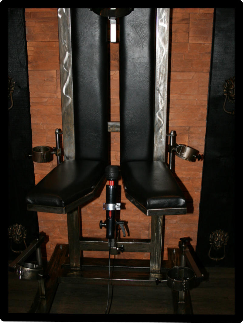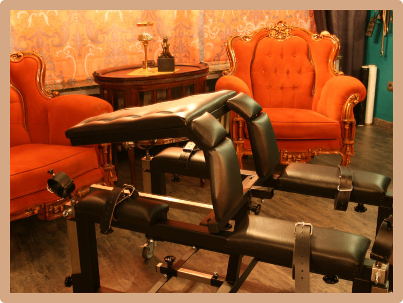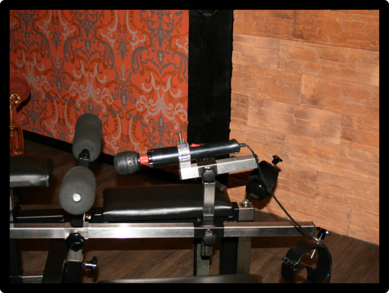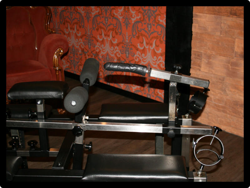 Am Sklavenstuhl, Strafbock, Slingbrett und Streckank habt Ihr die Möglichkeit, einen Dildohalter oder einen