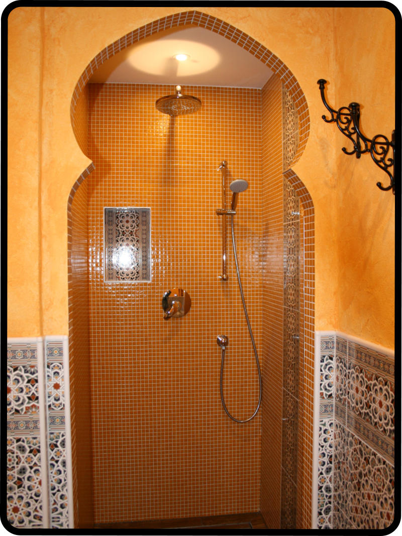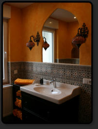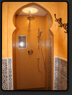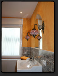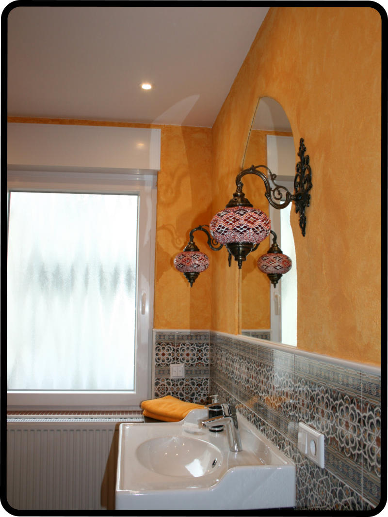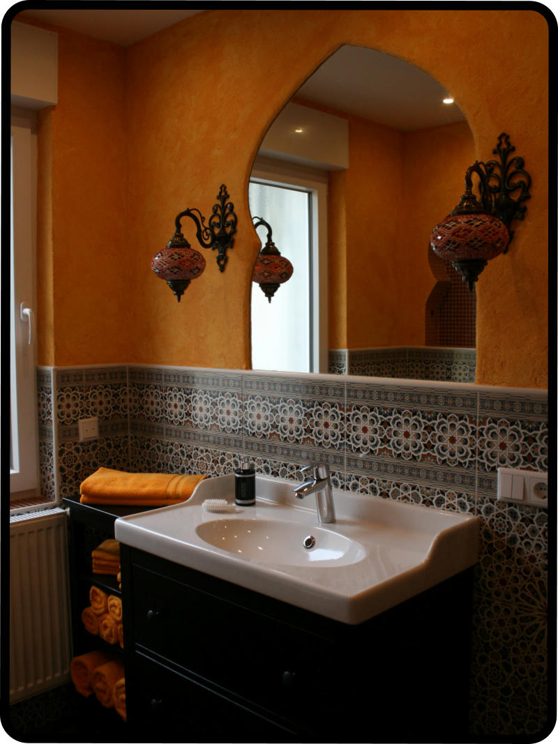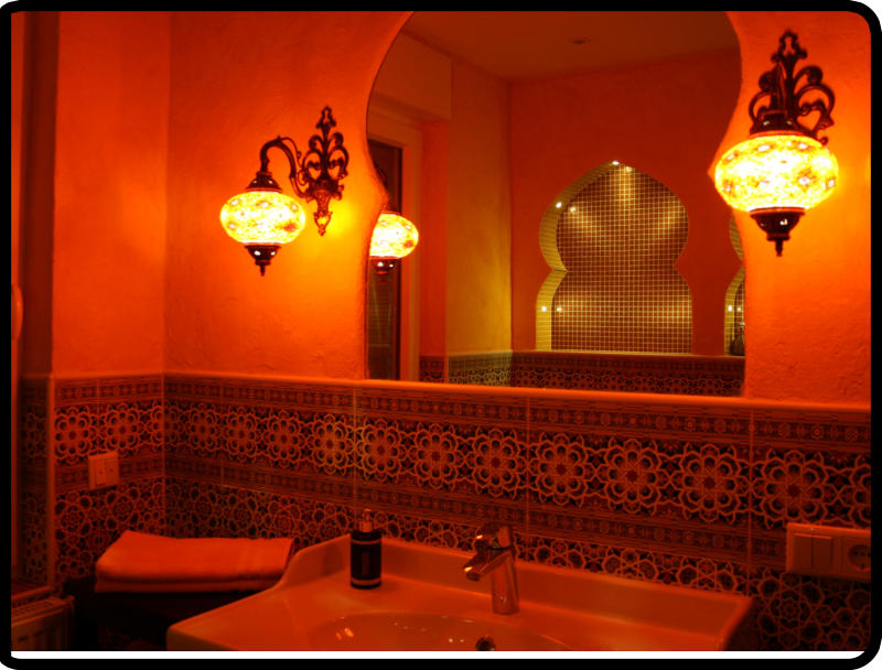 Tretet ein in dieses orientalische Badezimmer mit seiner offen begehbaren grossen Regendusche und lasst Euch verzaubern, von den vielen Bögen und dem indirekten Licht. Im Badezimmer stehen Euch, Handtücher, Duschgel, Shampoo, diverse Hygieneartikel und ein Fön zur Verfügung.