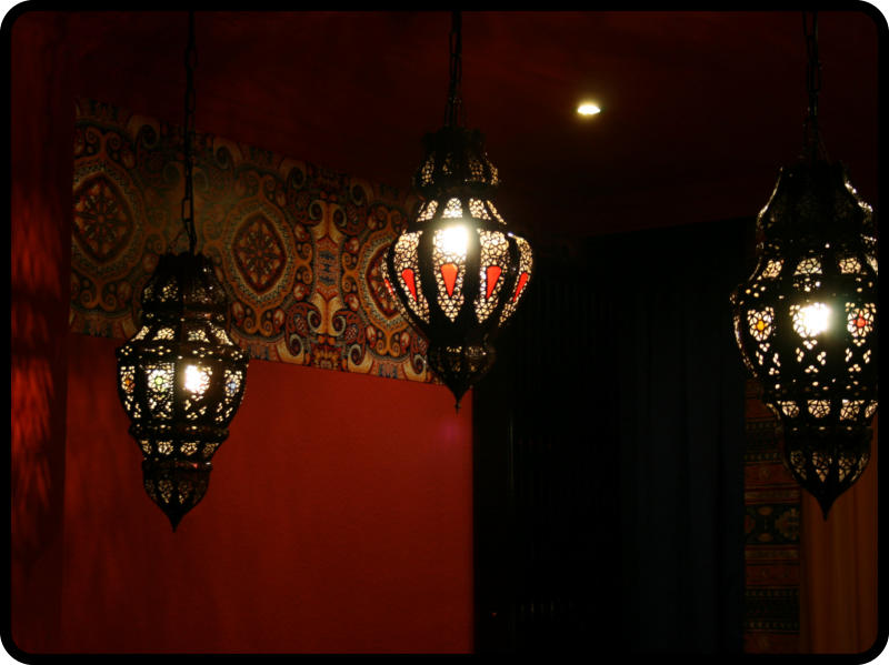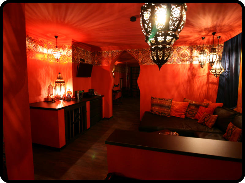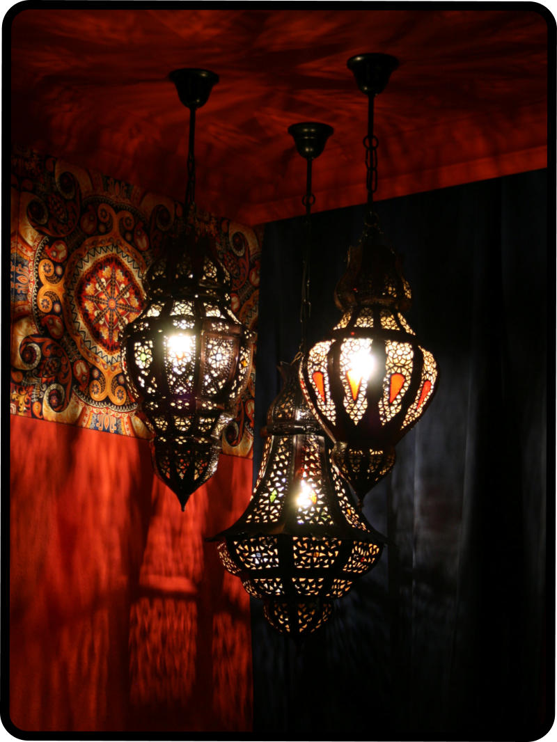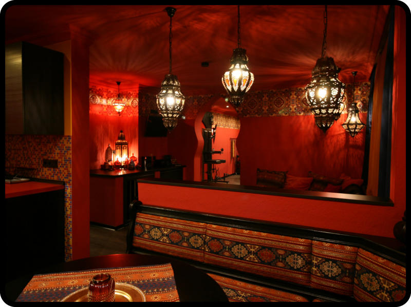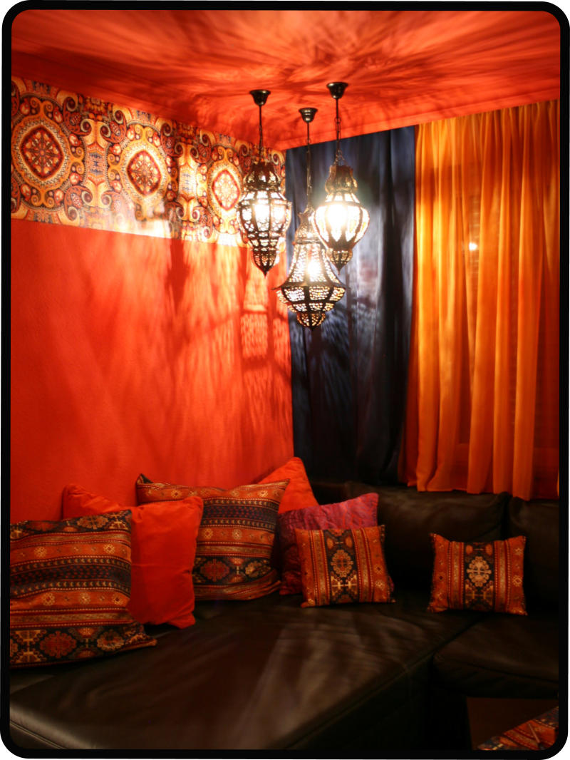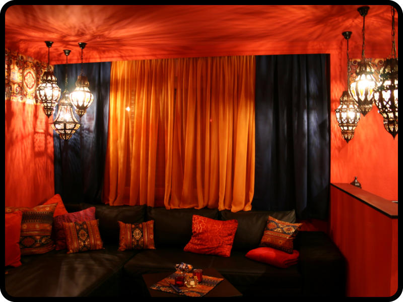 In diesem Wohnzimmer, wie aus 1001 Nacht mit seinen vielen orientalischen Leuchten,