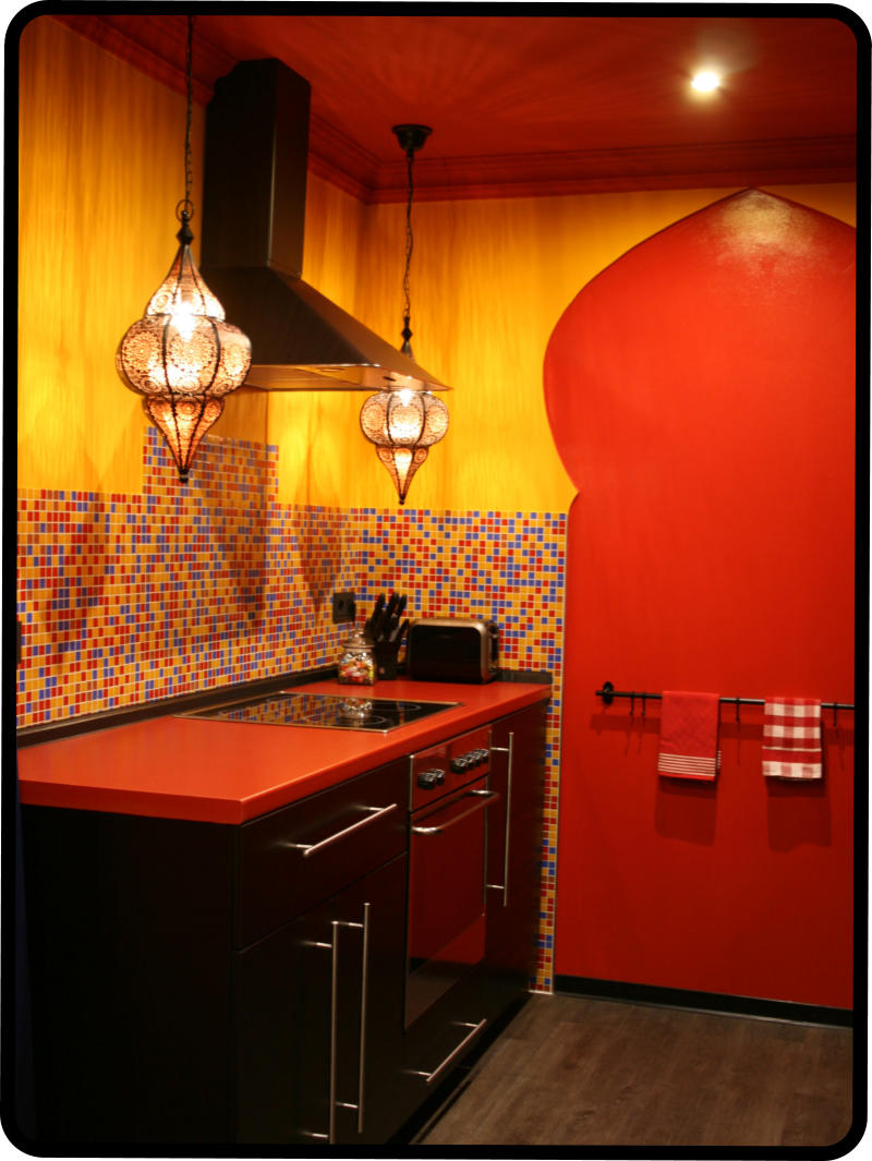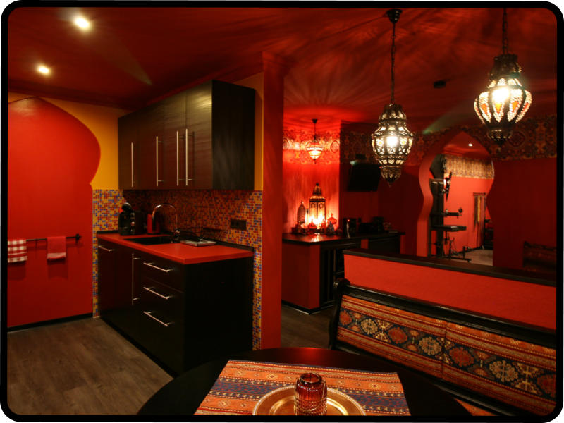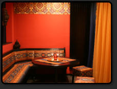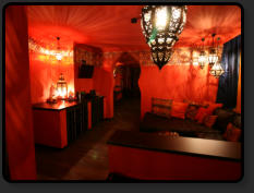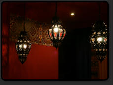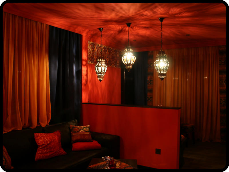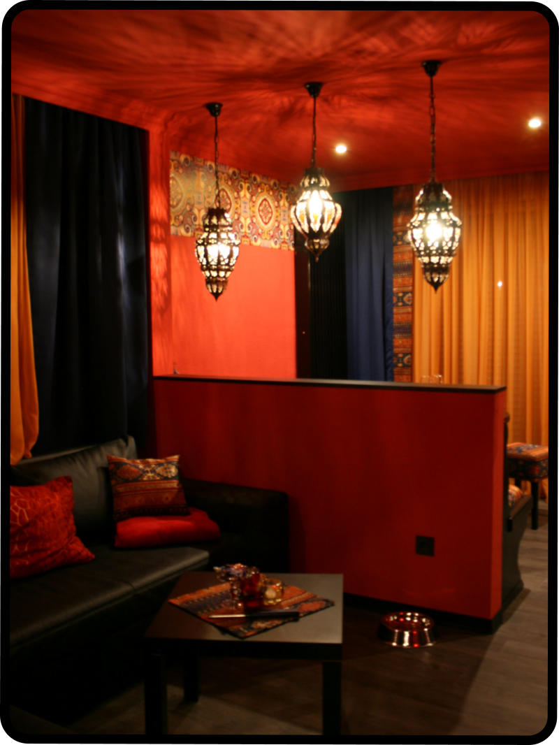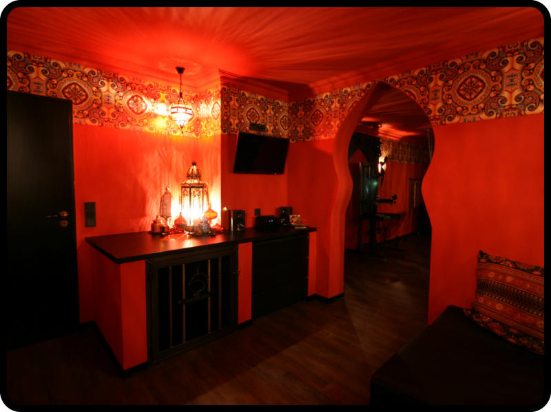 In diesem Wohnzimmer, wie aus 1001 Nacht mit seinen vielen orientalischen Leuchten,